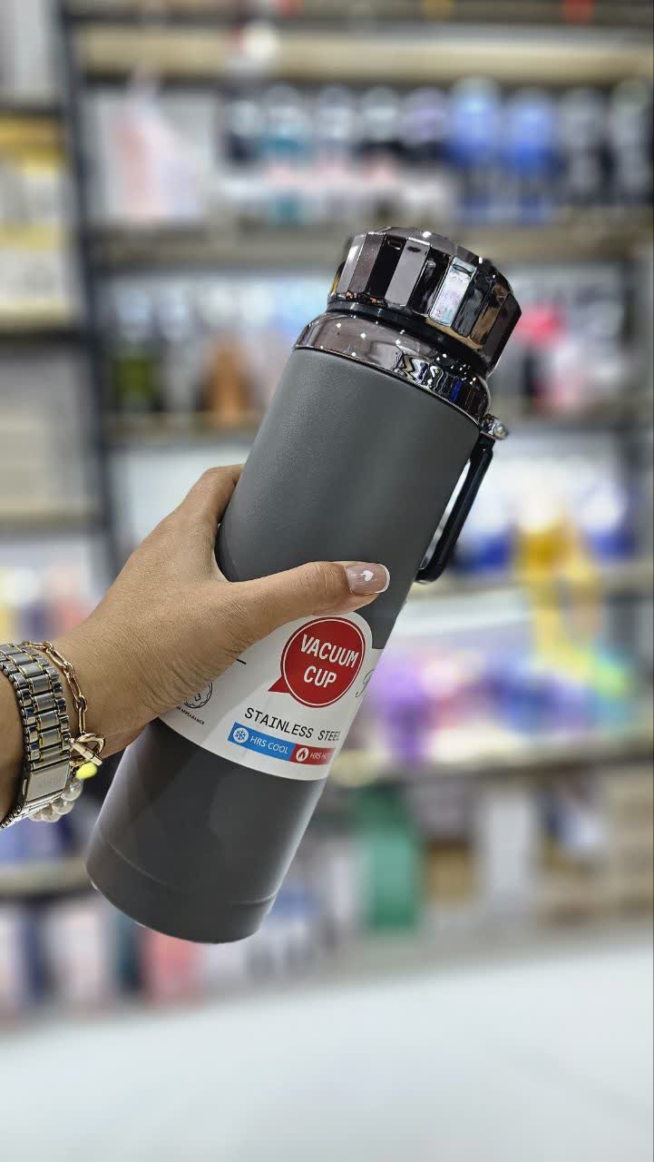 فلاسک و قمقمه درب الماسی درجه دار استیل ۳۱۶ یک لیتری سرد و گرم